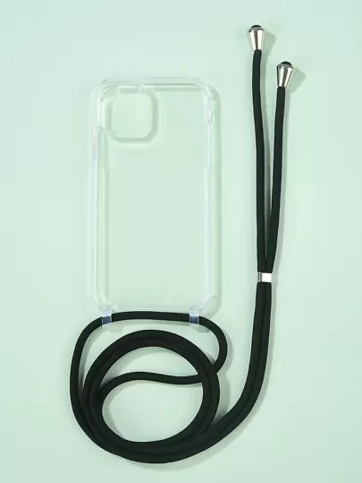 適用於 iPhone 11、iPhone 13、iPhone 14 Pro Max 的透明手機殼,配有掛繩 - 黑色 - 查看 1