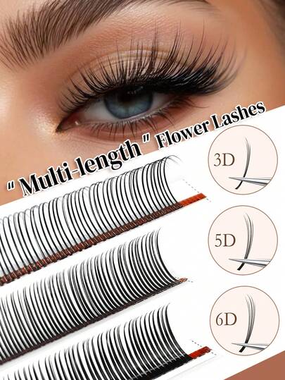 CoMango 12排D型卷翘3D/5D/6D仙女睫毛嫁接套装,防潮睫毛簇,预扇形仿貂毛5D花朵睫毛,化妆用品