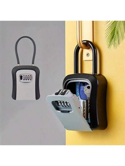 编码钥匙盒,猫眼形,家装工地工程防盗门锁临时入口储物盒,用于存放钥匙 - U型鎖黑色 - 查看 5