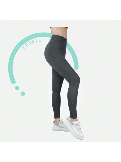 TEMIL SOCK Women's Seamless Leggings, Plus Size, High Waist, Yoga Pants, White, Black, Flesh, Navy Blue, Brown, Gray, Blue, Sky Green, Purple, Orange, Maroon, Pink, Yellow, Red And Fuchsia - 灰色 - 查看 1