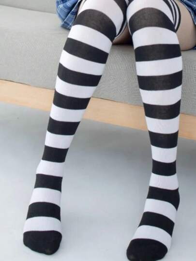 1双女士圣诞条纹过膝袜,适合舞台表演、角色扮演、派对、冬季保暖,Y2K风格 - 彩色 - 查看 10