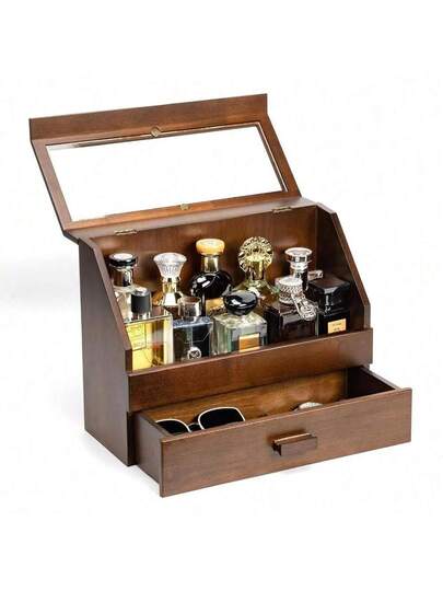 Cologne Organizer For Men, Wood Perfume Organizer Storage With Drawer & Acrylic Panel, Large Capacity Perfume Display Stand Case Collection Showcase - 預設 - 查看 1
