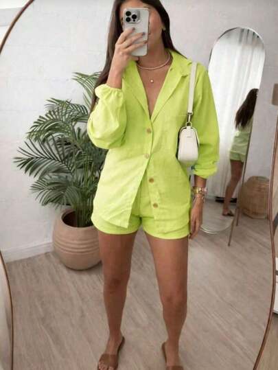 Combination Set Consisting Of A Long-Sleeved Top And Shorts.