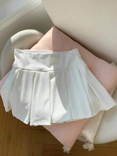 Comfortcana 休闲百搭纯色运动迷你百褶裙 - 白色 - 查看 1