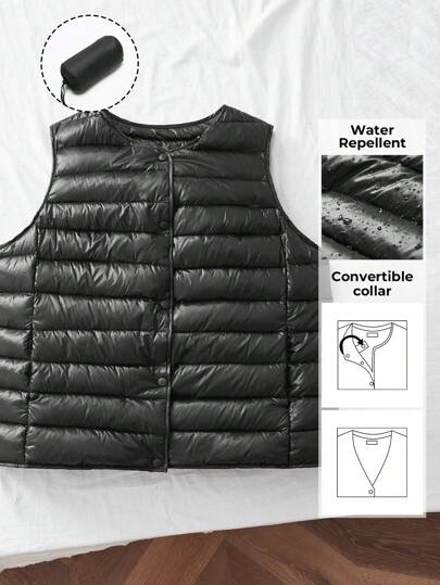 Comfortcana 无袖加厚羽绒背心,冬季,黑色 - 黑色 - 查看 8