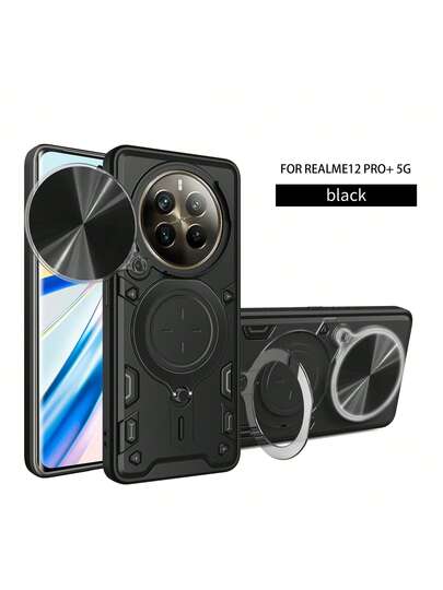 兼容 OPPO Realme 12 Pro 5G / Realme 12 Pro+ 5G 手机壳,带滑动相机镜头和支架 - 黑色 - 查看 1