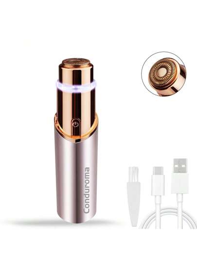 Conduroma 女士面部脱毛器,电动无痛面部剃毛器,可充电,适用于下巴、上唇和面部绒毛,带照明功能 - 金色 - 查看 1