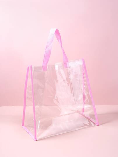 撞色滾邊單肩托特包度假適用於海灘 - 無色 - 查看 1