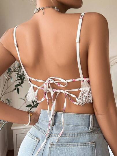 對比花邊印花胸罩,婚禮季胸罩 - 彩色 - 查看 5
