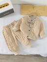 2 件装婴儿/女婴 3D 花卉圆领上衣 + 纯色简约百搭裤套装