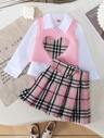 2 件套女婴花卉印花长袖连衣裙和纯色花卉背心套装