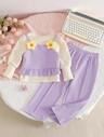 2件套少女珍珠花朵装饰上衣和纯色百搭短裤套装