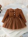 3 件套年轻女孩时尚休闲蝴蝶结豹纹拼布长袖连衣裙 + 配套帽子 + 包