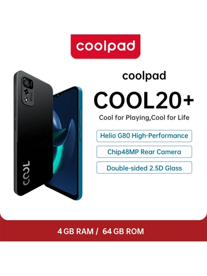 Coolpad 20+,Android 11,产品颜色:蓝色,CPU:G80,4+64G,6.517' HD+,屏幕,电池:4500mAh,后置摄像头:48MP,AI双摄像头,前置摄像头:5MP,侧面指纹+面部解锁,双卡4G充电头欧洲规格智能手机
