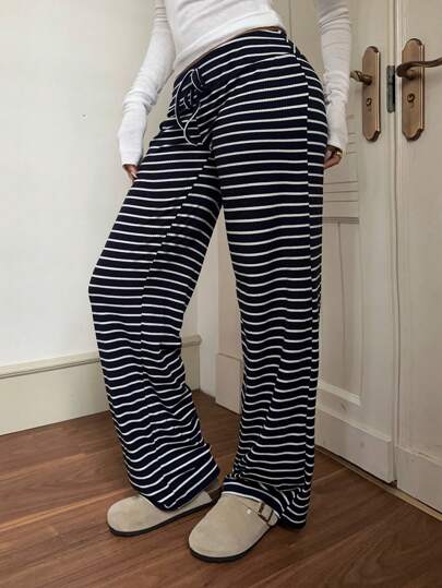 CovetEZ 低腰条纹拉绒抽绳瑜伽休闲阔腿裤,秋冬 - 黑色 - 查看 1