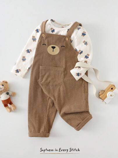 Cozy Pixies 2 件套男婴卡通动物图案针织柔软圆领长袖套头衫和围兜裤套装 - 彩色 - 查看 1
