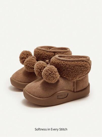 Cozy Pixies 秋冬百搭休闲时尚百搭毛绒加厚保暖可爱柔软宝宝雪地靴搞怪小球短靴拖鞋 - 棕色 - 查看 1