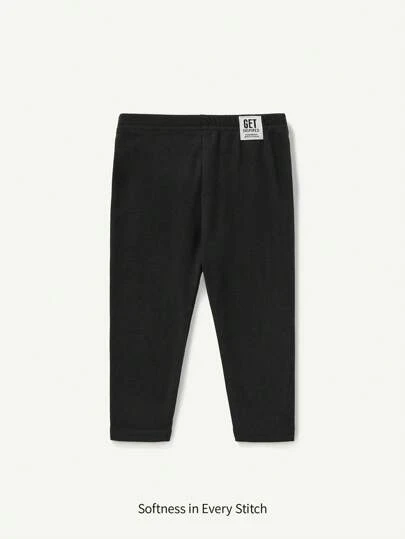 Cozy Pixies 女婴柔软针织高腰纯色休闲百搭裤 - 黑色 - 查看 1
