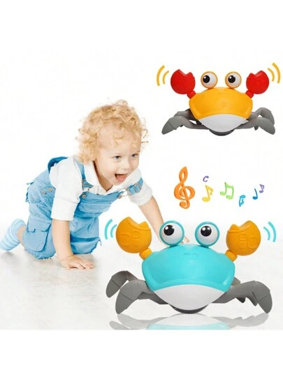 爬行螃蟹玩具,趣味互动跳舞行走移动玩具感官感应螃蟹带音乐,螃蟹玩具男孩女孩儿童生日礼物 - 彩色 - 查看 10