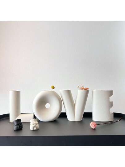 创意设计 LOVE 字母花瓶摆件,干花插花摆件,适用于客厅装饰、玄关装饰、办公桌、橱柜花瓶摆件,完美礼物 - 彩色 - 查看 10