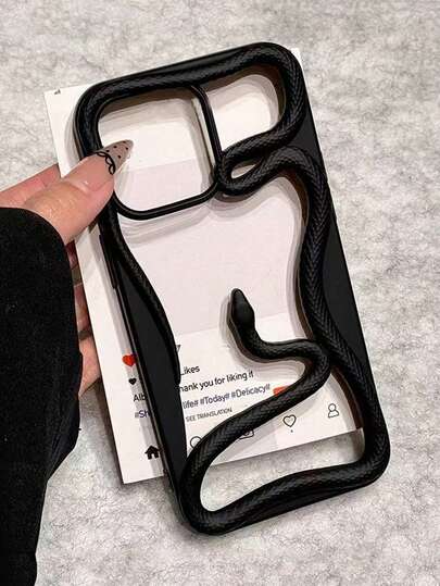 创意镂空蛇纹设计磨砂电镀保护手机壳适用于 16 Pro Max/16 Pro/16,蛇年新款 15、14、13/12、11情侣软壳,散热防水防震防摔防刮 - 磨砂黑 - 查看 5