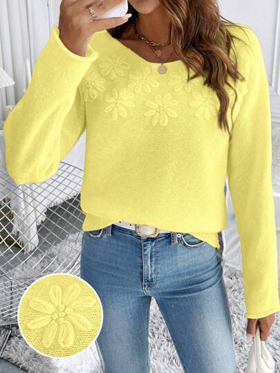 Chiquease 圆领纯色长袖基本款套头衫、休闲装、长袖上衣 - 芥末黃 - 查看 1