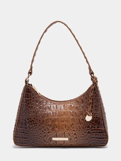 鱷魚壓紋流浪包附包飾 - 摩卡棕 - 查看 1