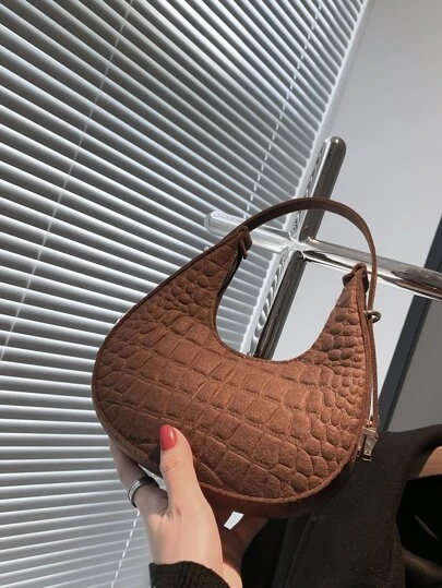 鱷魚壓紋流浪包 - 咖啡棕 - 查看 1
