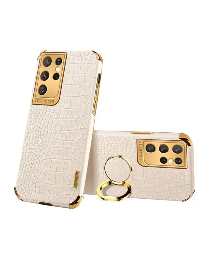 鳄鱼压纹手机壳带指环支架适用于 iPhone15/15Plus/15Pro/15Promax 防水防震防摔防刮 - 白色 - 查看 1