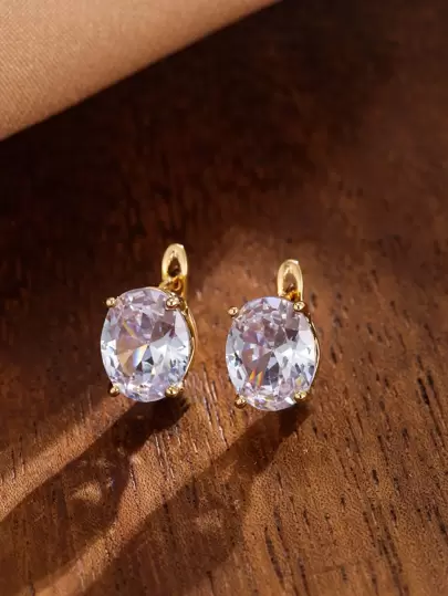 方晶鋯石裝飾耳環 - 金黃色 - 查看 10