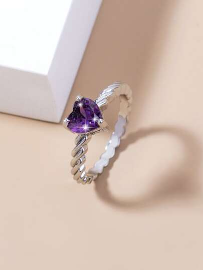 方晶鋯石愛心裝飾戒指 - 銀色 - 查看 1