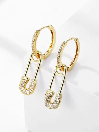 方晶锆石别针耳环 - 金黃色 - 查看 9