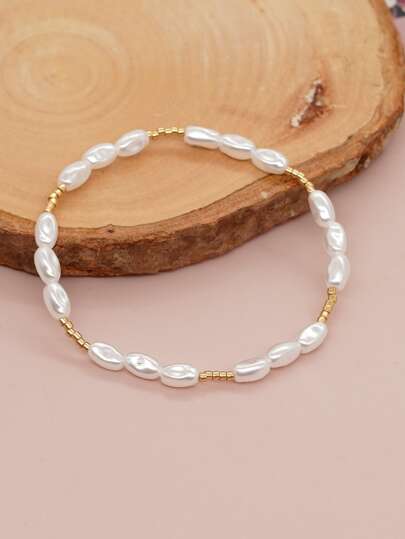 養殖人造珍珠串珠手鍊 - 彩色 - 查看 2