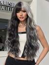 26英寸女士黑白波浪卷发假发,带刘海,自然柔软渐变卷发,适合日常佩戴、派对、角色扮演等场合。