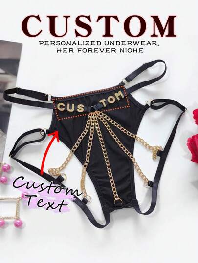 定制性感金属链内衣DIY拼接趣味丁字裤T裤定制任意字母,圣诞服装,圣诞礼物,圣诞快乐,定制圣诞内衣,狂欢 - 黑色 - 查看 1