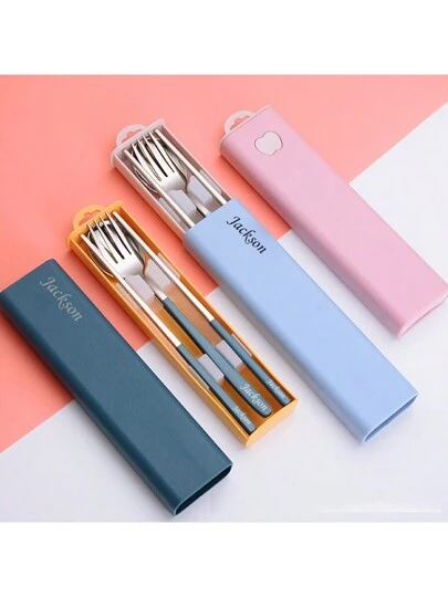 定制三件餐具套装 - 勺子、叉子、筷子、个性化餐具套装 - 彩色 - 查看 12