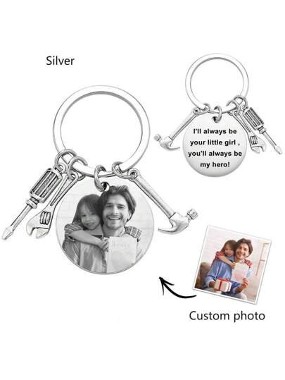 自定義刻字鑰匙扣,可放個人照片和修理工具套裝,迷人的父親節禮物 - 銀色 - 查看 1