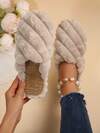 女士毛绒内衬厚底保暖拖鞋,适合室内家居使用,冬季新品