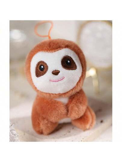 可爱卡通毛绒树懒娃娃,树和猴子图案,情侣毛绒玩具,生日礼物,背包吊坠,钥匙扣吊坠 - 深棕色 - 查看 1