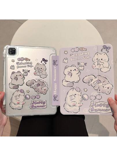 可爱猫咪双面彩绘透明防震保护壳,亚克力硬壳,兼容 iPad (A16) 第 11/10 代 10.9 英寸、iPad 10.2 英寸、7/8/9 英寸、iPad Pro 11 英寸(第 2/3/4 代)、iPad Mini 7/6 英寸,支持智能睡眠/唤醒功能,带 Apple Pencil 插槽,兼容小米 Redmi Pad SE 11 英寸(2023 年款)和 MatePad SE 11 英寸(2024 年款)/MatePad 11.5 英寸 S - 無色 - 查看 3
