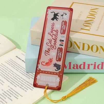 可爱猫咪爱好者读书俱乐部亚克力书签 - 复古票根设计,配金色流苏,送给猫妈妈和书虫的完美礼物