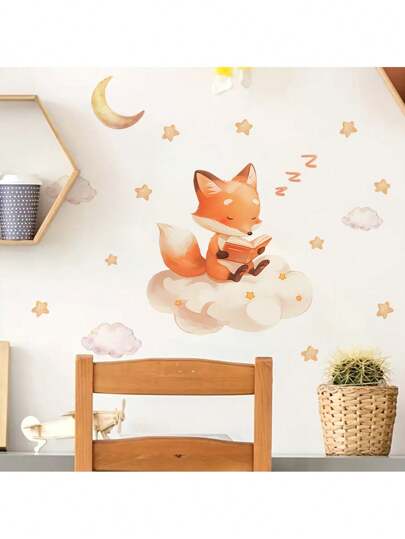可爱狐狸儿童阅读墙贴 - 卡通书迷动物墙贴,适用于幼儿园、书房装饰、可移除教育教室装饰儿童房 - 彩色 - 查看 6