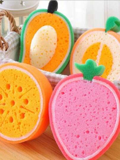 可爱水果形加厚海绵,多功能强力去污清洁,厨房必备用品,妈妈的好帮手 - 彩色 - 查看 6