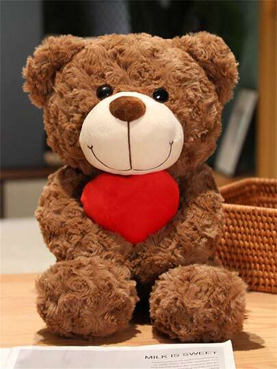 可愛的泰迪熊毛絨玩具娃娃心形枕頭墊,是生日/母親節送女友或母親的理想禮物 - 棕色 - 查看 1