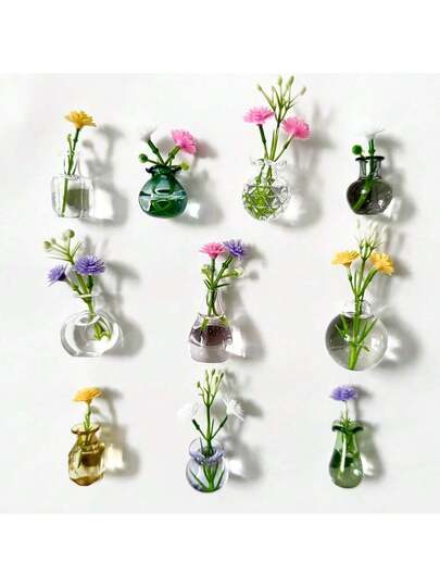 Cute Mini Vase Magnets For Fridge, Flower Pot Magnet, Tiny Magnetic Flower Glass Vases Refrigerator Accessories, Funny Aesthetic Plant Pot For Locker Office Kitchen Decoration, Small Magnet Bud Plant,TransparentGlass10