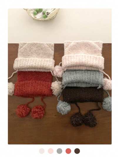 可爱毛球猫耳针织帽,带毛球抽绳,帽檐可折叠,保暖舒适。 - 貓耳朵毛球 - 查看 15
