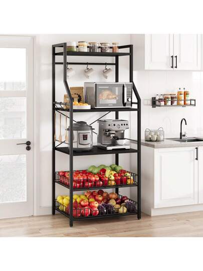 CuteHairy 5 Tier Kitchen Storage Rack Metal Frame Microwave Oven Stand With 8 S Hooks - 黑色 - 查看 1