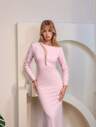D&M 浅蓝色人字形紧身连身裤,带透明网眼镂空和开衩,露背吊带裙