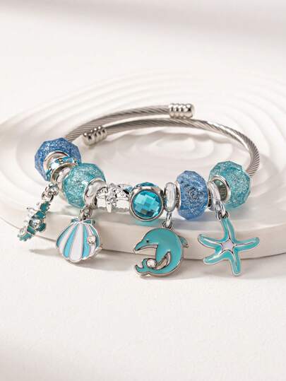 1 件珐琅海星海洋生物夏季假期串珠手镯 - 彩色 - 查看 1