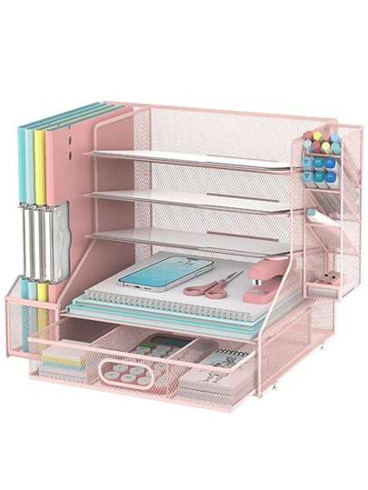 DALTACK 带文件架的桌面整理器、带笔架和抽屉的 5 层网格纸质信纸托盘整理器、带 3 个倾斜文件分类器的桌面整理器和存储,用于办公用品返校